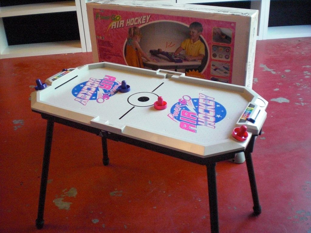 AC mesa de air hockey com sensor eletrônico e som eletrônico. Alta velocidade do ventilador. Excluindo as pilhas (6 x 1,5 V AA), incluindo adaptador.
