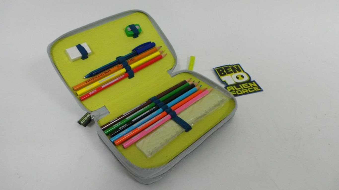 O conteúdo inclui canetas, lápis, borracha, régua, etc Dimensões pountenslijper: 20 x 14 x 6 cm.
