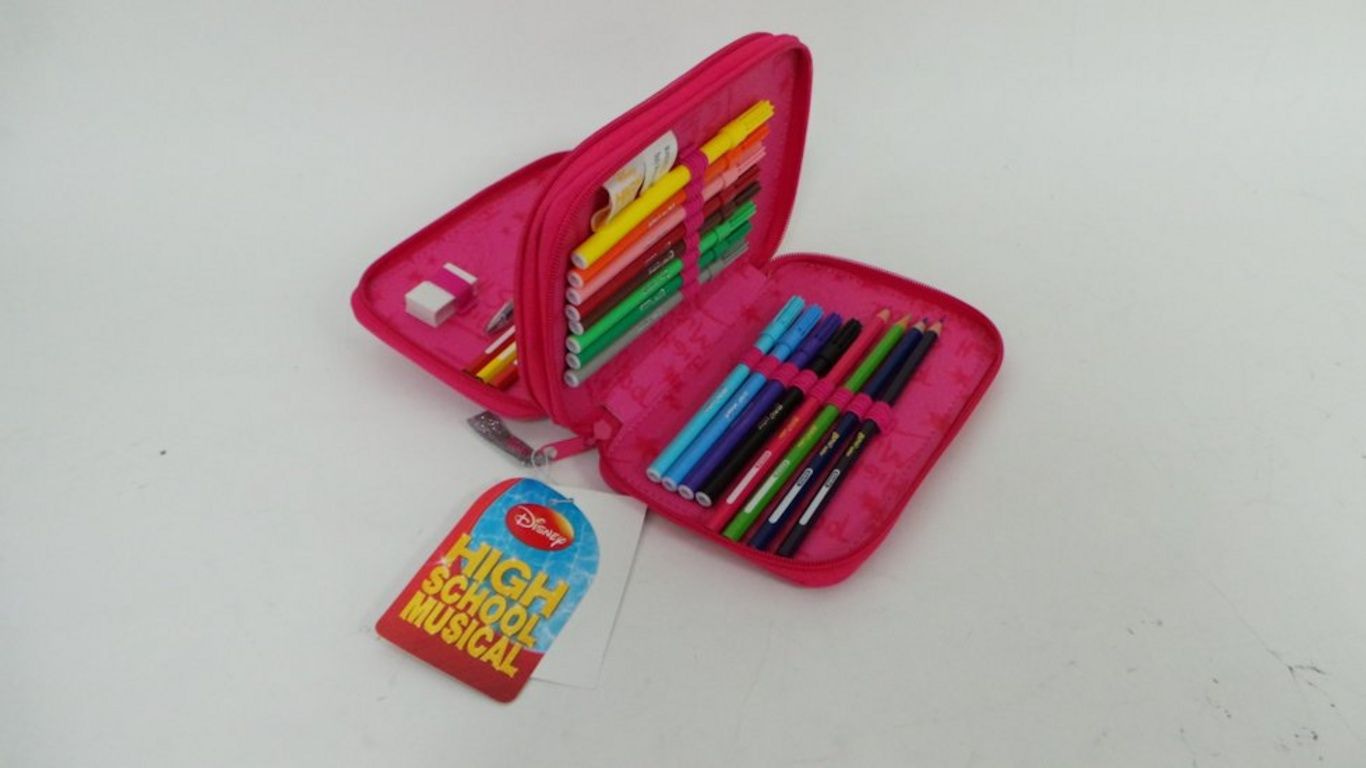 O conteúdo inclui canetas, lápis, borracha, régua, etc pountenslijper