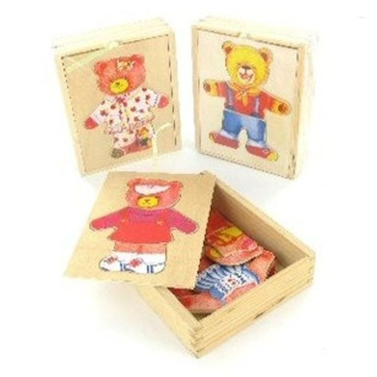 Caixa de madeira (12 x 14 cm.) Com 6 pedaços de madeira para que ele possa ser. 'S Rosto e roupas do urso mudou