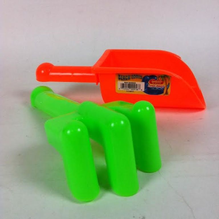 2 peças conjunto de praia constituída por um ancinho e uma pá.