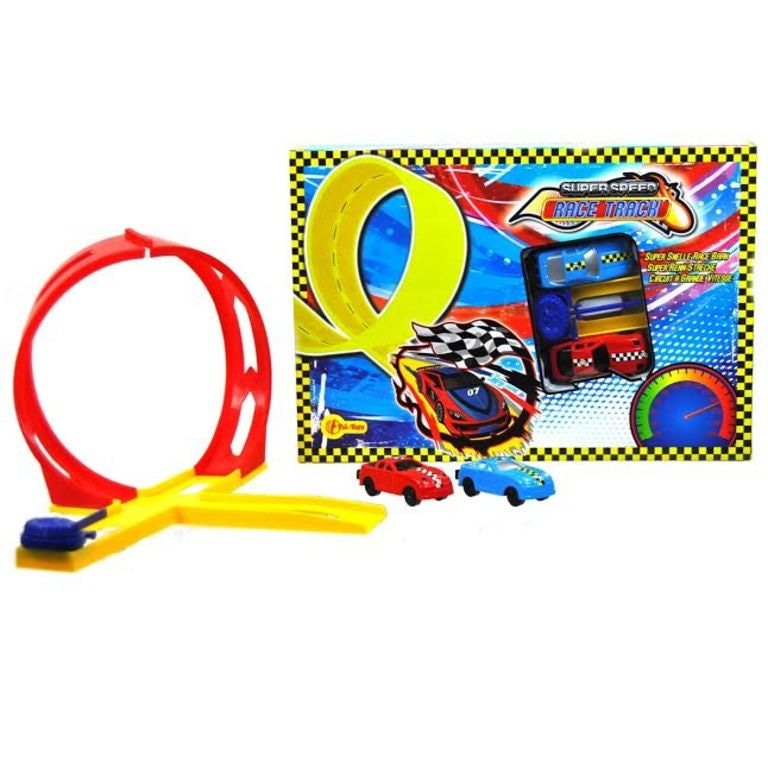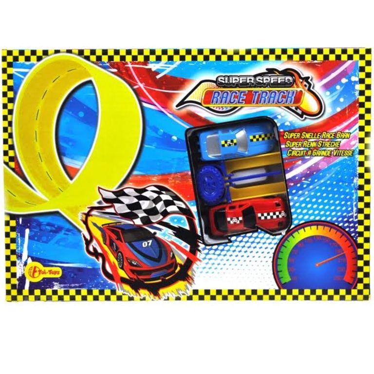 Nice corrida embalado em uma bela caixa. A pista é composta por 5 peças e dois carros. Coloque a faixa juntos e os carros e abater.