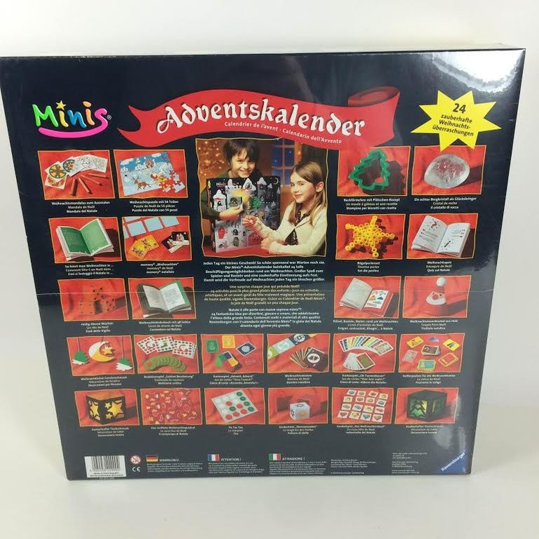 O calendário do advento Minis contém 24 presentes de Natal. Divertido de jogar e artesanato e um bom prelúdio para o Festival. Assim, a antecipação do Natal é um pouco maior a cada dia. Ideal para crianças de 5-9 anos.