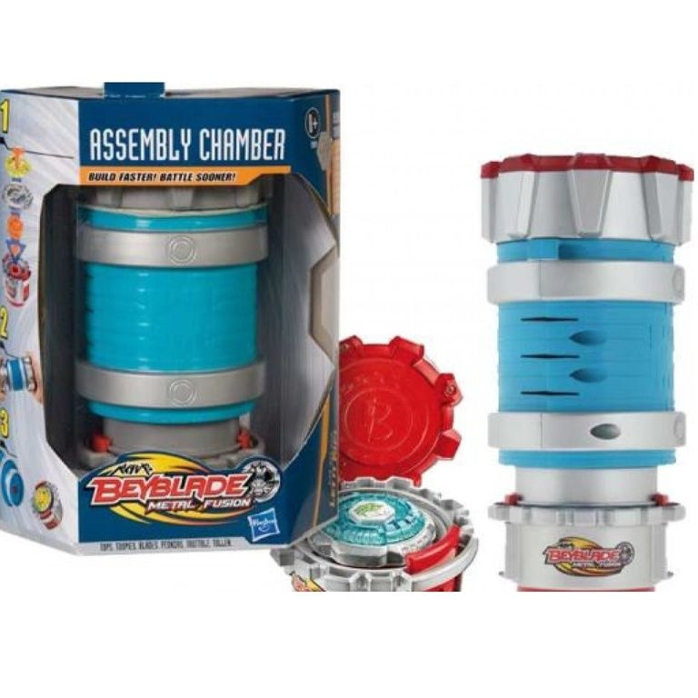 Empilhe, vire e você está pronto para a batalha! Esta câmara de montagem permite que você monte facilmente seu Beyblade e também oferece armazenamento para 10 tops extras.