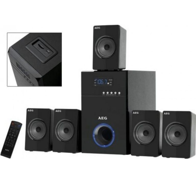 5,1-Channel Home Theater Speaker System com sintonizador FM PLL e preto USB/Card-Slot- / Prata