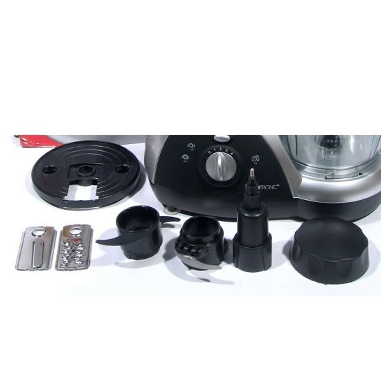 CLATRONIC alimentos "KM 3099". Processador de alimento poderoso com motor de cerca de 550 W. Com alta qualidade, discos removíveis e acessórios de aço inoxidável. Especificações: 5 Posição-chave com função de pulso e chave de segurança. Conteúdo liquidificador: 1,5 l. Tigela: 0,8 l. Acessórios: disco de corte, lâmina de motorista, lâmina de mistura, disco grade e uma espátula de plástico. 230 V/50 Hz.