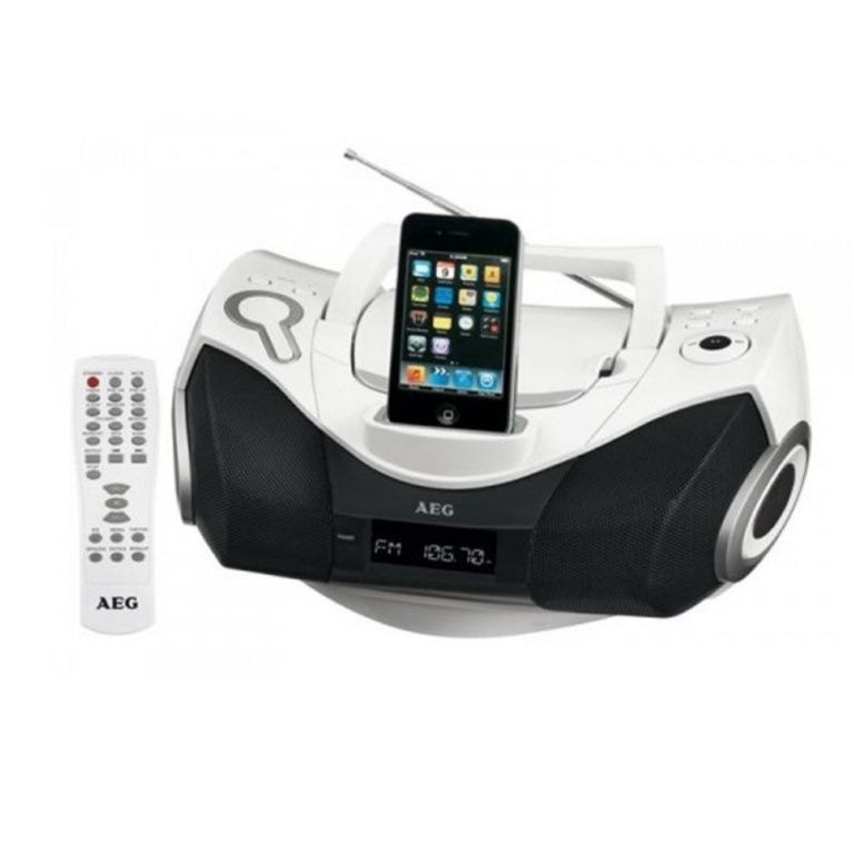 Ideal para uso móvel! A AEG rádio gravador SR 4337 iP tem muito a oferecer: um iPhone / iPod e reprodução função de carregamento, um controle remoto, um sintonizador de estéreo PLL e quatro alto-falantes estéreo. A busca por título e funcionalidade shuffle do leitor de CD integrado, pode ler facilmente o visor LCD. O rádio é equipado com um LED de som estéreo e uma antena telescópica, e também tem mais de 30 pré-.