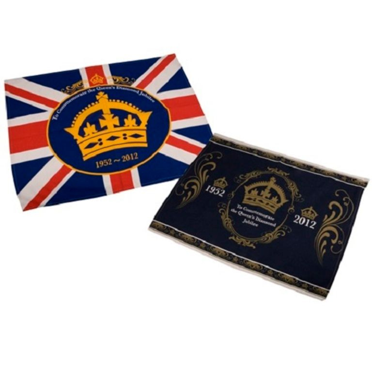 Uma grande toalha de chá bonito com a bandeira Inglês e coroá-los.