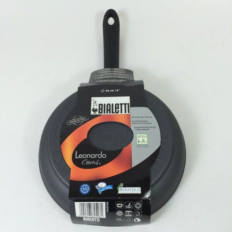 Um equilíbrio perfeito entre tecnologia e criatividade, assim que a série de Leonardo Bialetti poderia ser melhor descrito. Para tirar o máximo proveito de suas refeições Bialetti combina a praticidade da panela com um design elegante com atenção aos detalhes. É possível usar a panela a uma temperatura de 230 graus Celsius na fornalha e o calor é distribuído de forma óptima sobre a superfície resistente da panela. As panelas não são adequados para a indução.