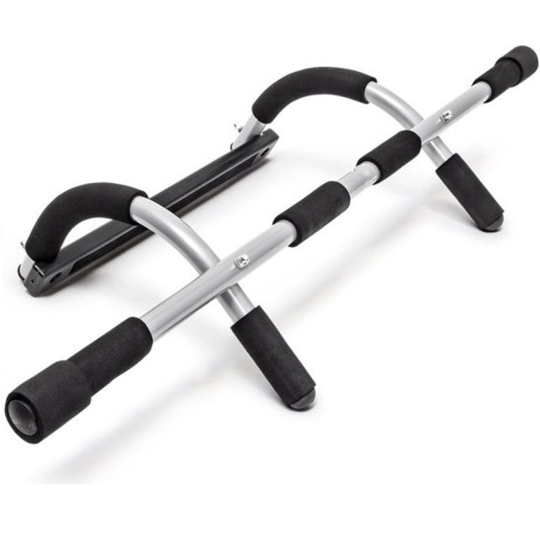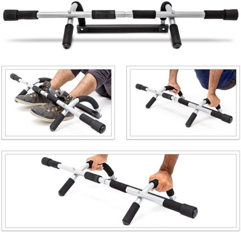 Esta barra de pull-up em casa, você pode fazer seu treino e treinar seus músculos. Ele permite que você faça quatro exercícios no poste e no solo ea haste para segurar em 3 maneiras diferentes. A haste de pull-up tem uma capacidade de carga de 130 kg e é adequado para caixilhos de portas entre 60 e 80 cm. Ele é alças de aço altamente fortes têm espuma e com instruções de montagem incluído para montar e fácil de anexar sem perfurar o pólo.