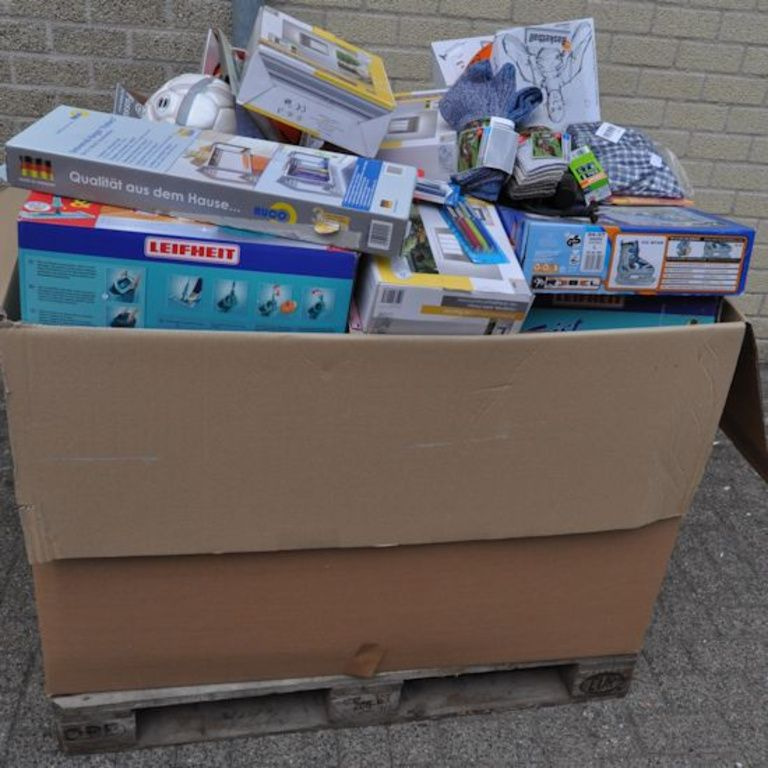 Todos esses itens são misturados em uma caixa de paletes: 120 x 80 x 90 cm.