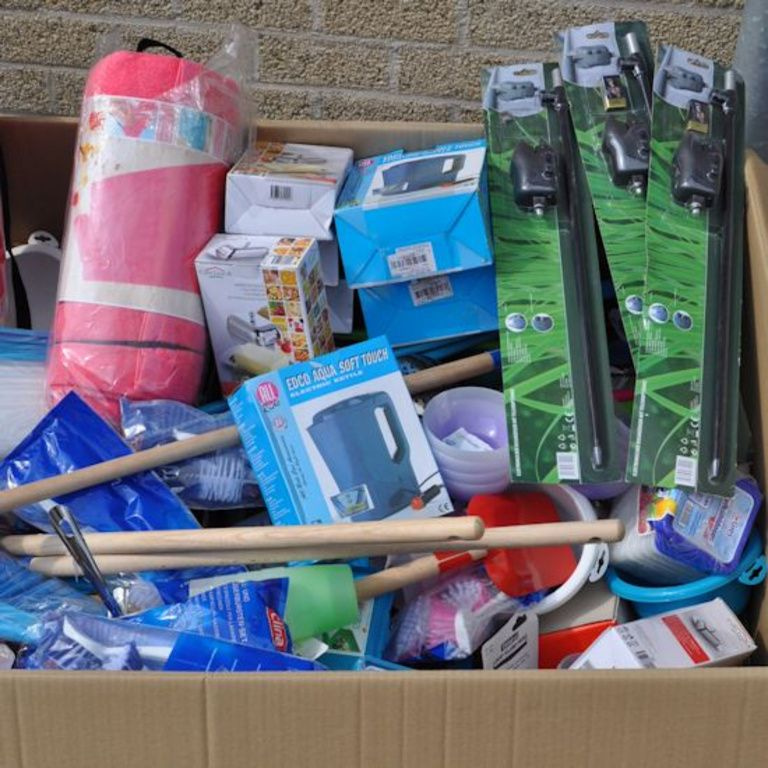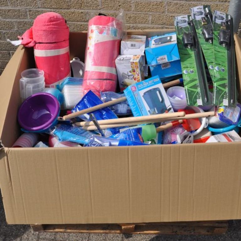 Esta caixa contém pallet: Oa Houseware, brinquedos, ferramentas, artigos de escritório, etc