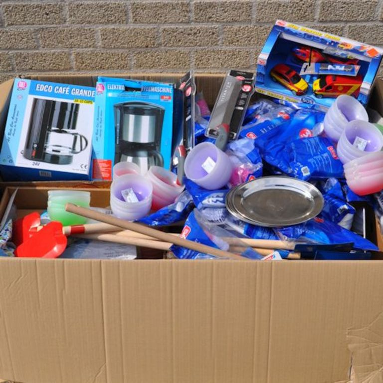 Esta caixa contém pallet: Oa Houseware, brinquedos, ferramentas, artigos de escritório, etc