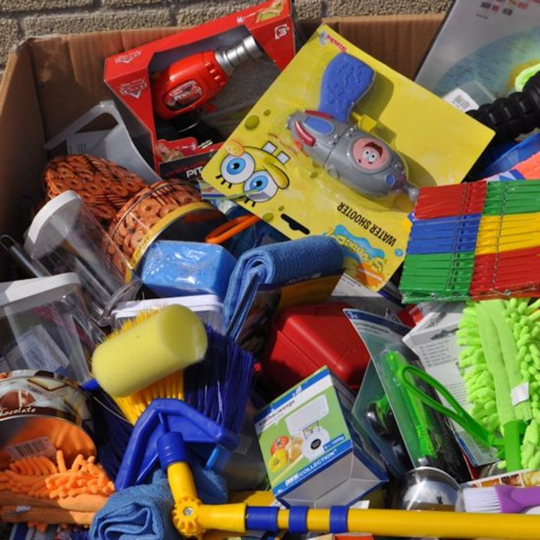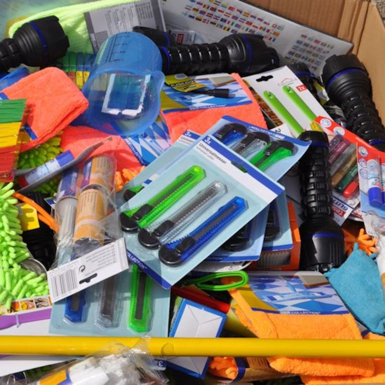 Esta caixa contém pallet: Oa Houseware, brinquedos, ferramentas, artigos de escritório, etc