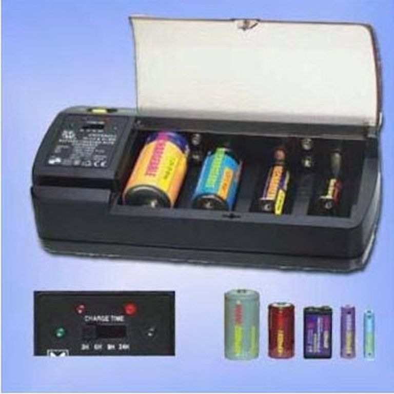 4 canais universal Ni-Cd Ni-MH carregador de bateria com controle timer selecionável. Com diferentes definições do temporizador para baterias de diferentes capacidades. Para 1-4pcs de Micro AAA, AA Mignon, Baby C, Mono D e 1-2pcs 9V ou Ni-Cd Ni-MH