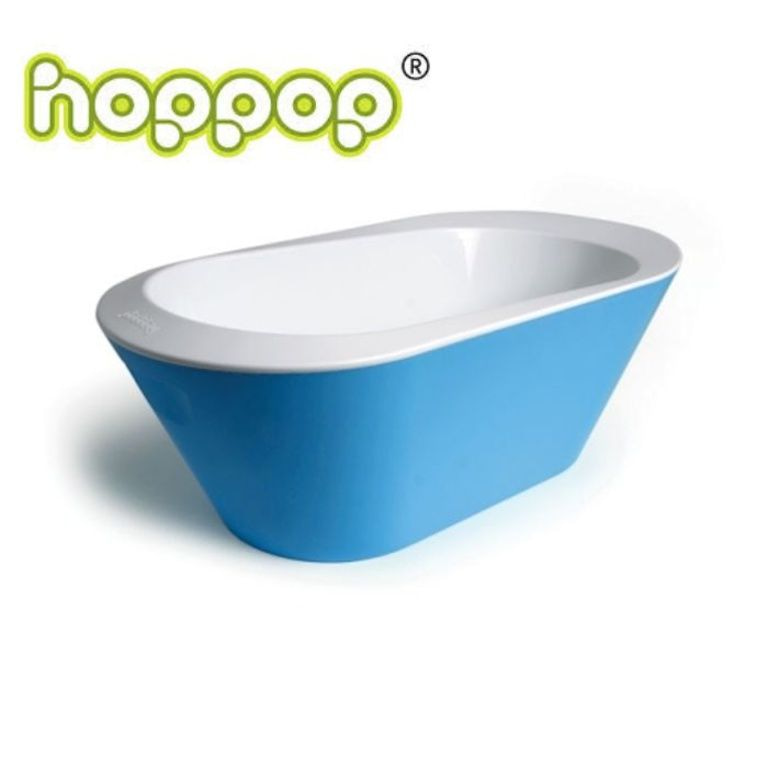 O plástico banho do bebê Hoppop com parede dupla está completamente adaptado ao tamanho de um bebê pequeno. Ele é projetado para manter a água do banho por mais tempo na temperatura correta. A piscina é confortável de usar, tanto para a mãe ea criança.