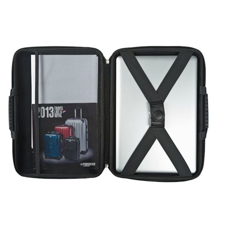 A tampa tem no interior através de uma fivela que pode ser fechado para manter o notebook no lugar.