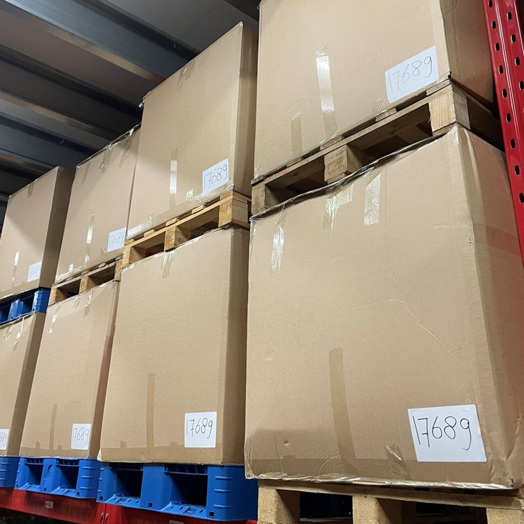 Todos esses itens são misturados em uma caixa de palete de: 120 x 80 x 80 cm.