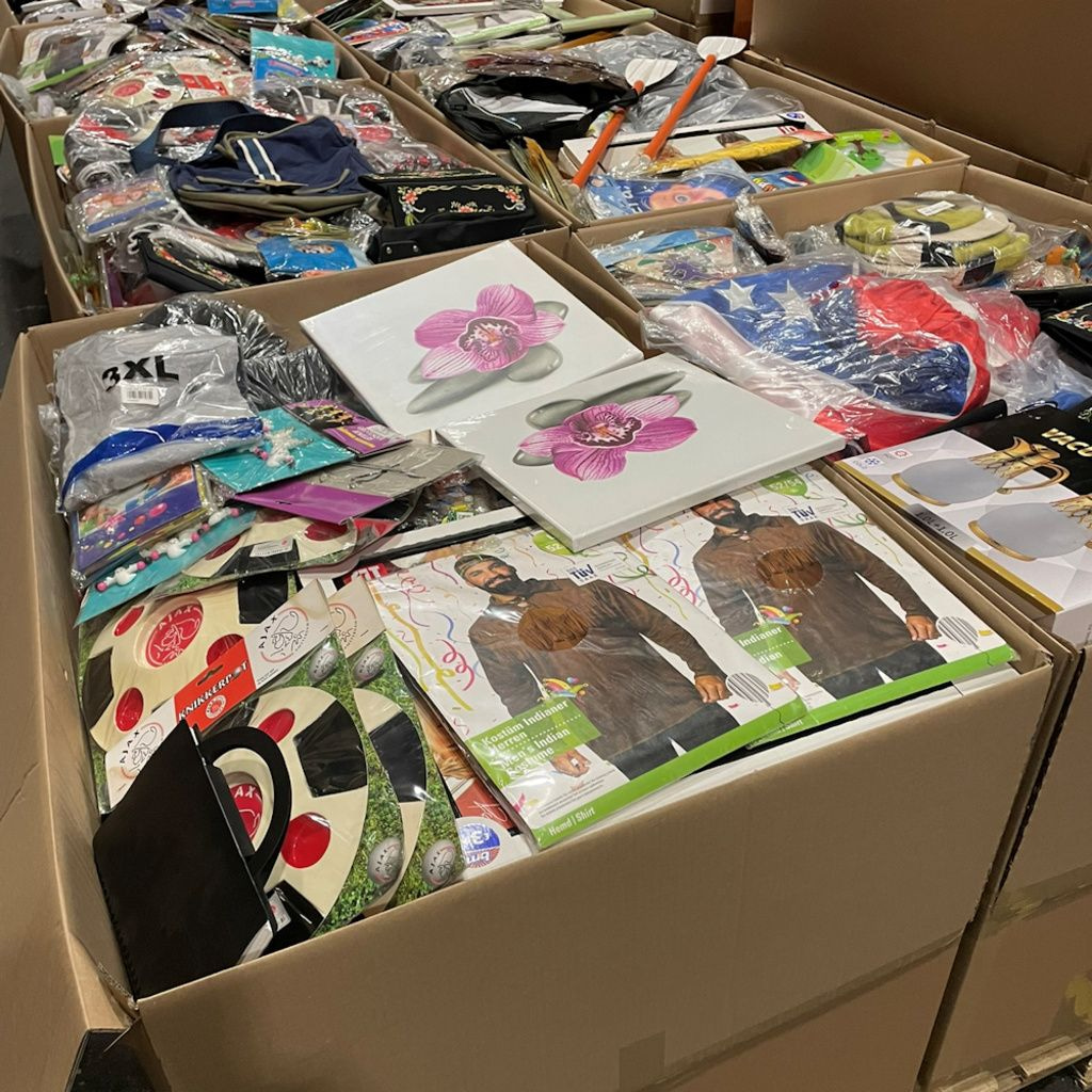 Conteúdo: Caixas de paletes MIX: Artigos domésticos, brinquedos, artigos para festas, etc. - A-WARE