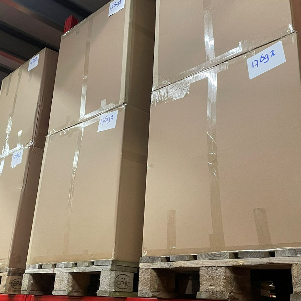 Total: 64 caixas de paletes = 32 paletes (1 caminhão cheio)