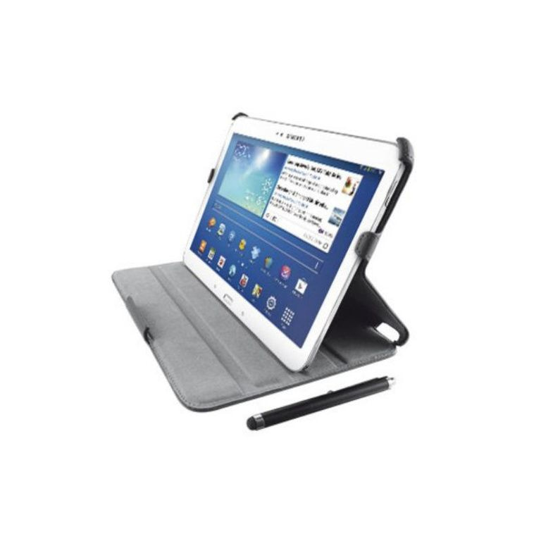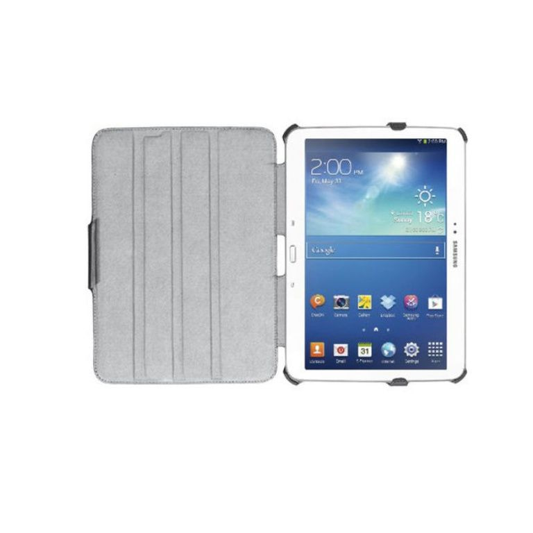 Este elegante Confiança Galaxy Tab3 10,1 manga apresenta uma caneta stylus para fácil de operar o seu tablet. A tampa tem um forro macio para ajudar a proteger o seu dispositivo. Ajuste o ângulo para determinar a sua posição ideal.
