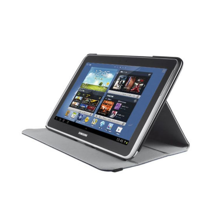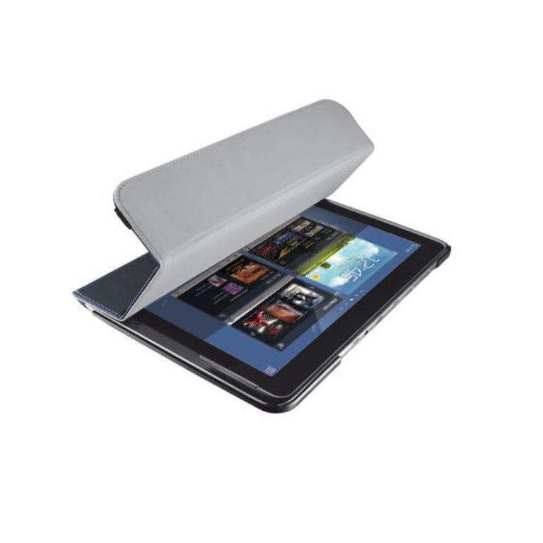 Proteger a frente e de trás de sua Gaxy Note 10.1 para o caso do Trust. A alça de fechamento elástico mantém a tampa está bem fechada. É comprimido pode ser colocado em duas posições diferentes nesta manga. As aberturas para botões e câmera permanecem abertos.