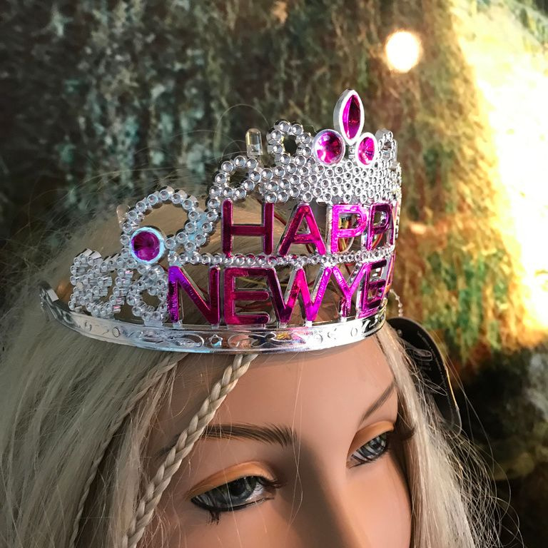 Emissor de luz (LED) tiara com texto Feliz Ano Novo.