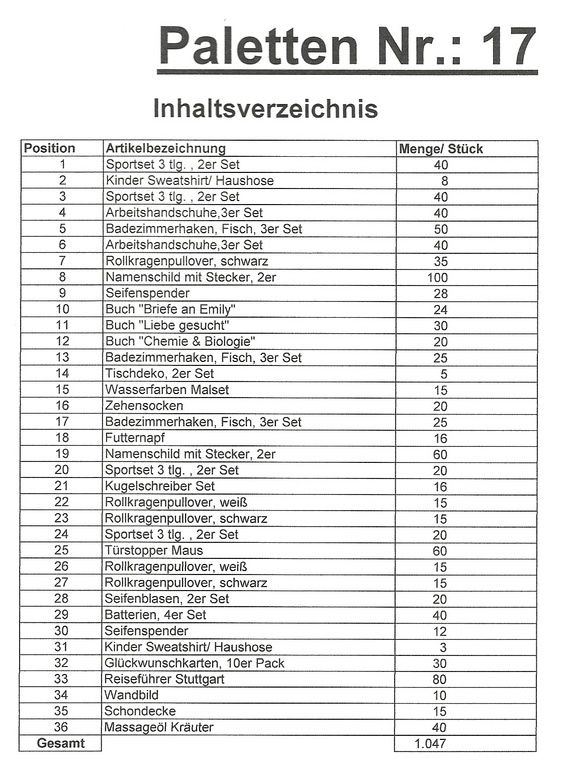 Conteúdo palete: 1.047 artigos St. vários!