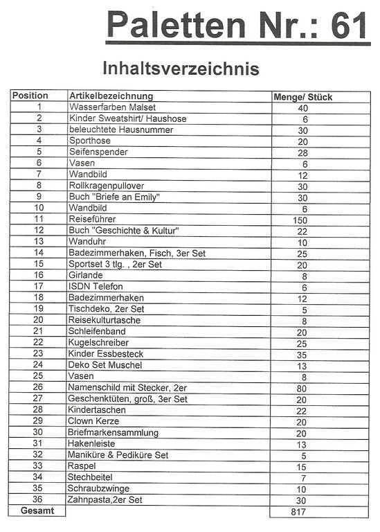 Conteúdo palete: artigos 817 St. vários!