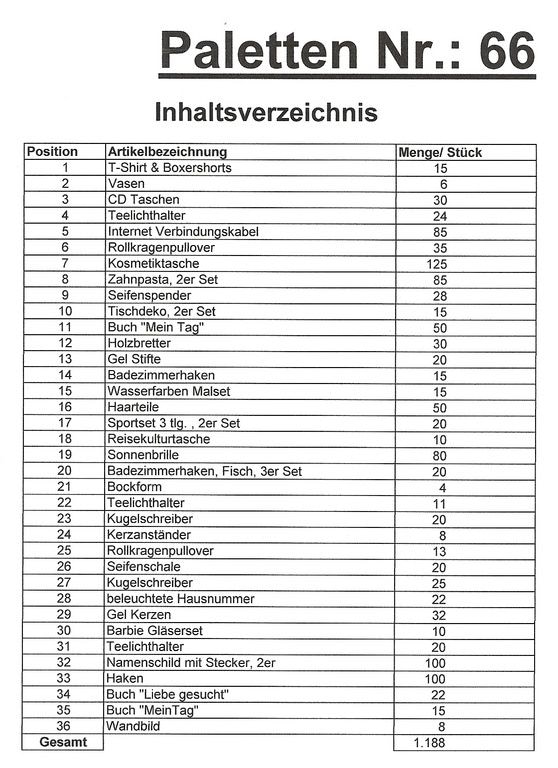 Conteúdo palete: 1.188 artigos St. vários!
