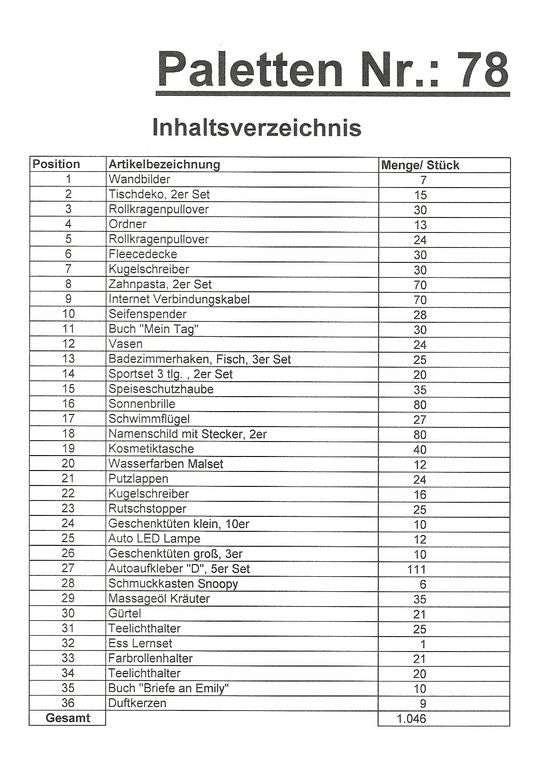 Conteúdo palete: 1.046 artigos St. vários!