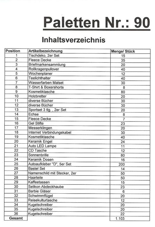 Conteúdo palete: 1.103 artigos St. vários!