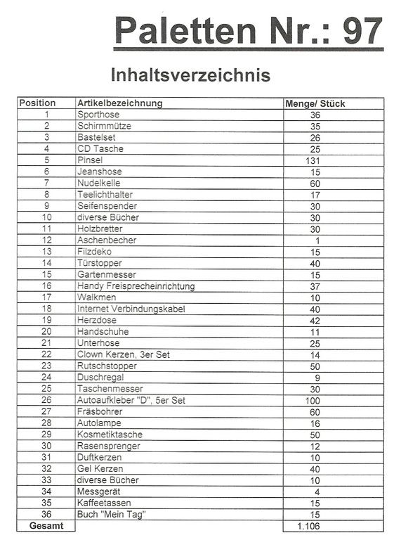 Conteúdo palete: 1.106 artigos St. vários!