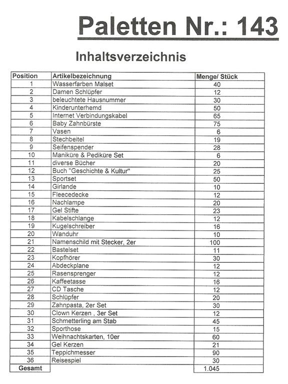 Conteúdo palete: 1.045 artigos St. vários!