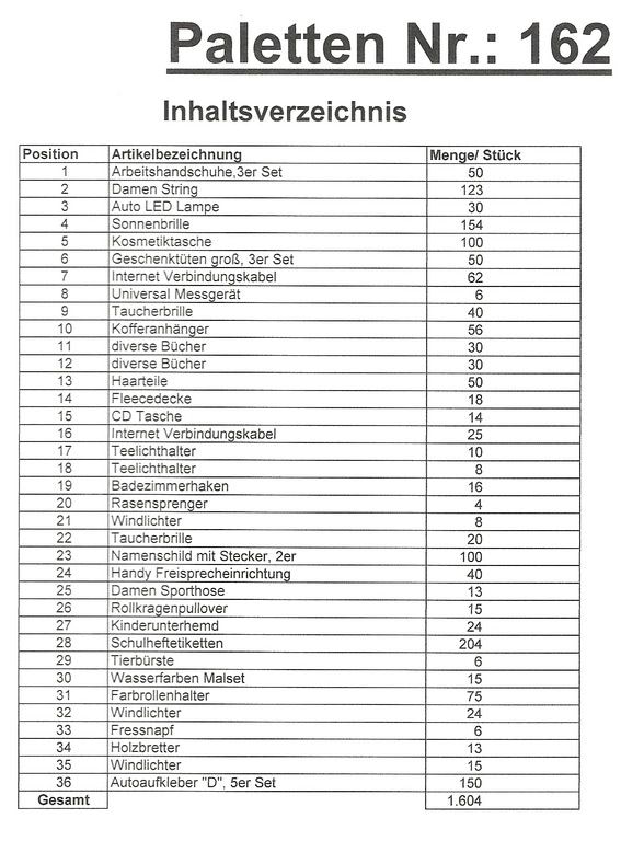 Conteúdo palete: 1.604 artigos St. vários!