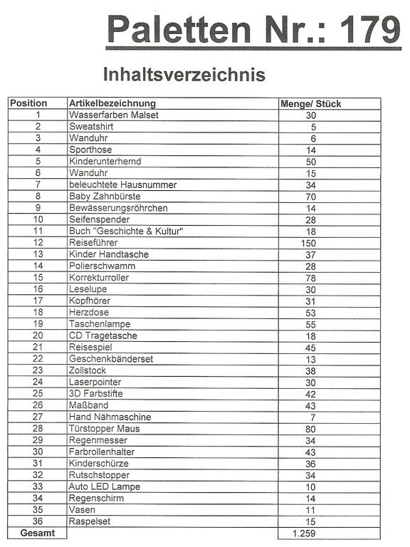 Conteúdo palete: 1.259 artigos St. vários!