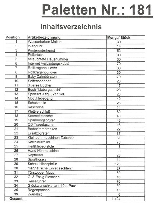 Conteúdo palete: 1.424 artigos St. vários!