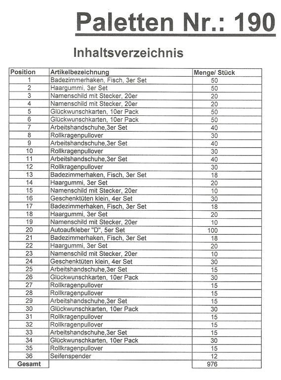 Conteúdo palete: artigos 976 St. vários!