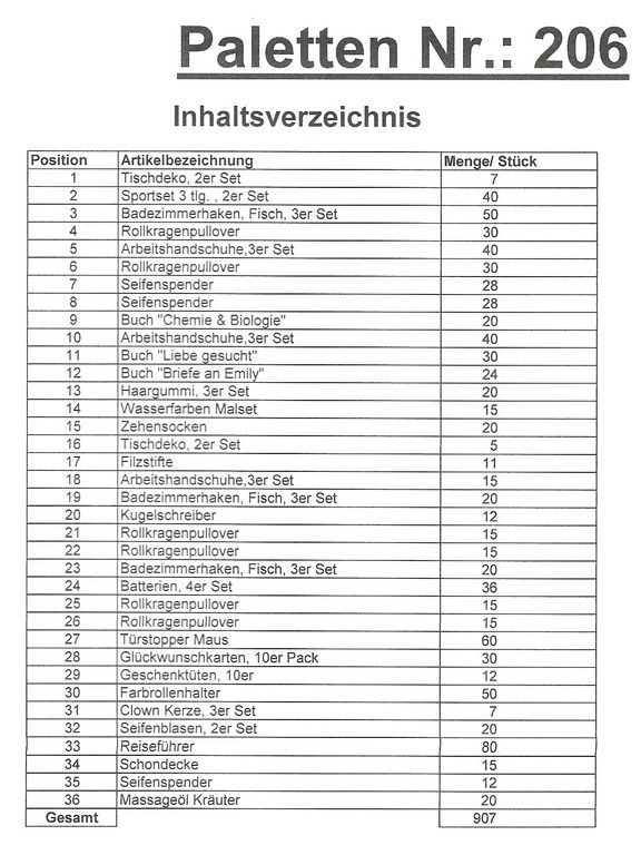 Conteúdo pallet: 907 artigos St. vários!