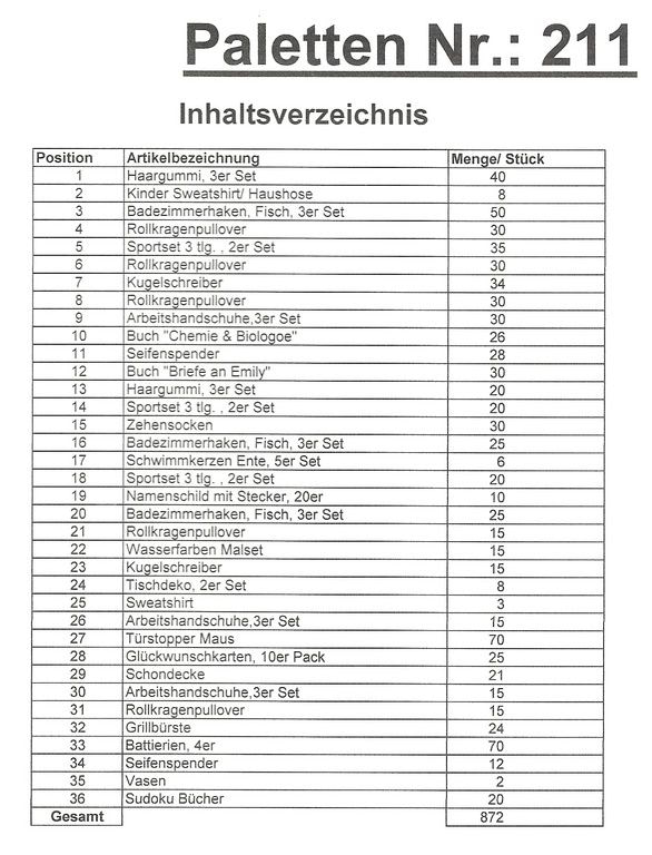 Índice de paletes: 872 artigos St. vários!