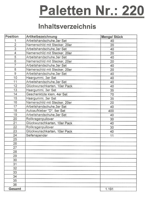 Conteúdo palete: 1.191 artigos St. vários!