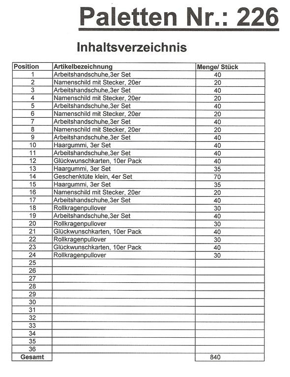 Conteúdo pallet: 840 artigos St. vários!