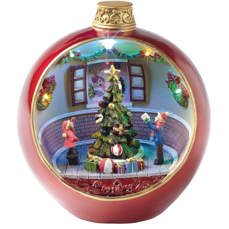 Bola de Natal decorativa com cena atmosférica Natal em pó de pedra e PVC. Com luz LED.