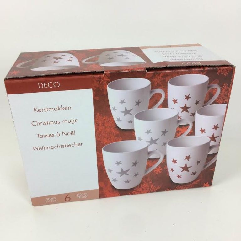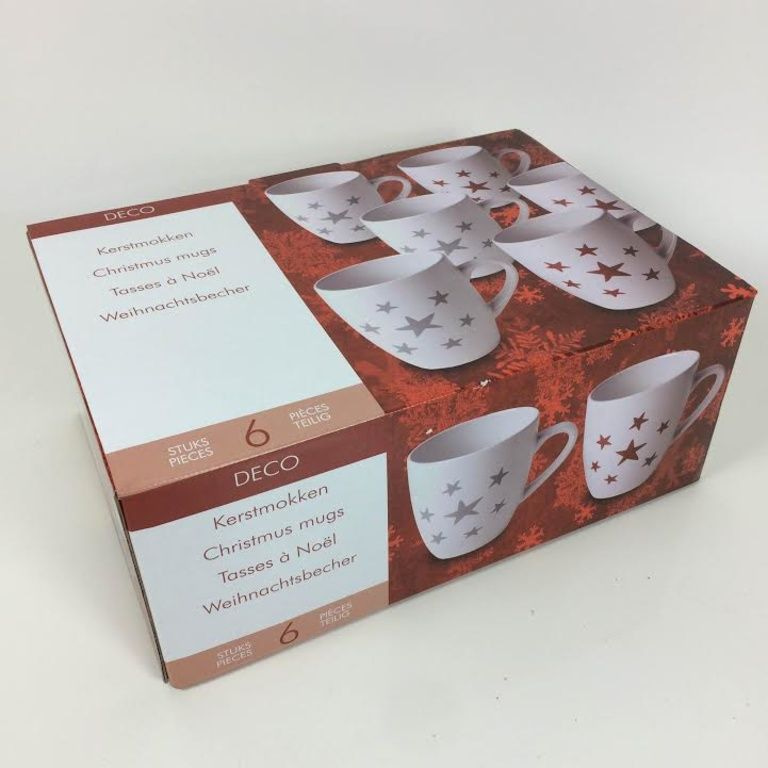 3 x Papai caneca branca com um padrão de estrela vermelha